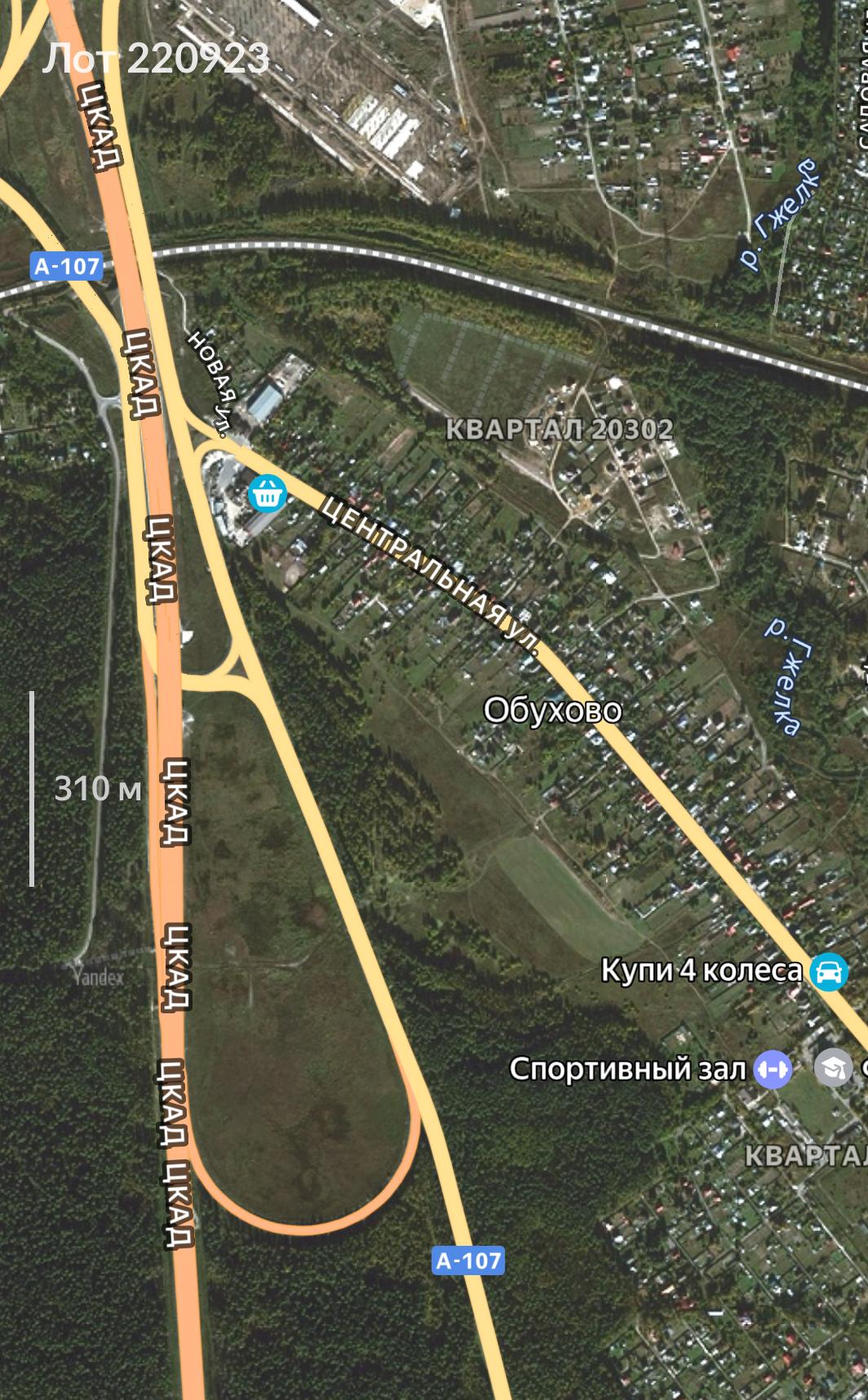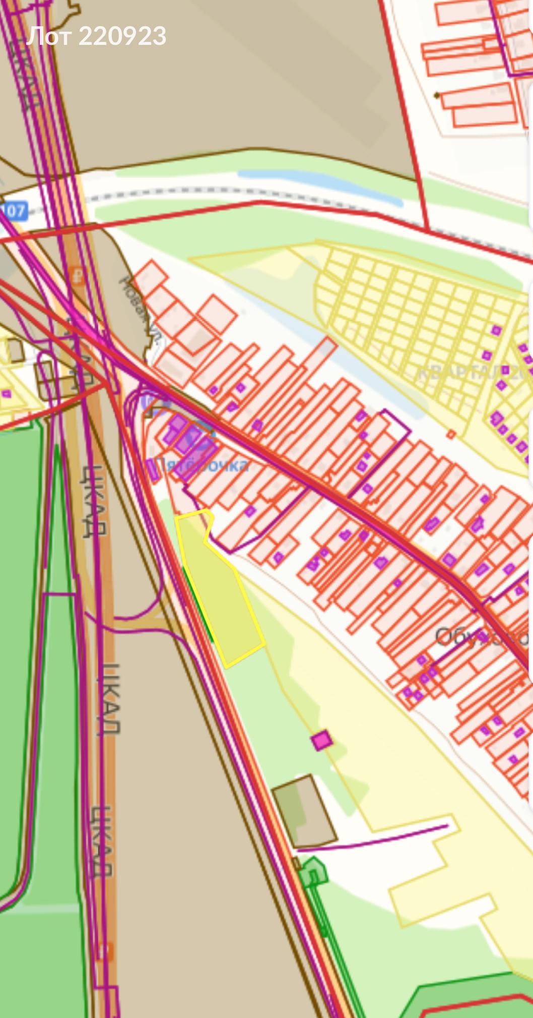 Лот № 220923 Участок для вашего бизнеса!!! 15177 кв м расположен вдоль трассы федерального значения А- 107 развязка с ЦКАД вблизи деревни Обухово Идеально под складской комплекс, автозаправку